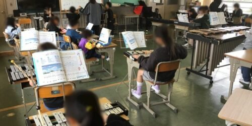 〔2年音楽〕 合奏に向けて、担当する楽器の練習です。 〔4年理科〕 試験管の口にせっけん水のまくをはって、手であたためる...
