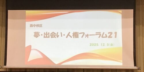 〔6年〕 西中校区の小学校6年生・中学校1~3年生が西中学校の体育館に集まり、西中校区「夢・出会い・人権フォーラム21」...