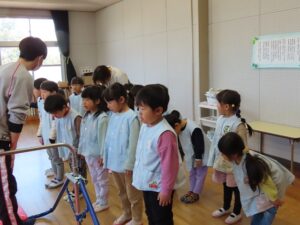 ホーム > 日々の活動の様子 / 伊勢寺幼稚園 第9回体育で遊ぼう(2/14) 今日の体育で遊ぼうは、「鉄棒」。準備体操をしっかりとしてから逆上がりに挑戦。 先生のお話をしっかり聞いています。 一人でできる子が増えてきました。あともうちょっとの子も! ありがとうございました。3月もよろしくお願いします。 シェアする Twitter でシェア はてなブックマークに保存 LINE でシェア Facebook でシェア Pocket に保存 Feedly で購読 関連投稿 日々の活動の様子 / 伊勢寺幼稚園 日々の活動の様子 / 伊勢寺幼稚園 おおきなかぶごっこ 日々の活動の様子 / 伊勢寺幼稚園 えほんだね、誕生会(12/11) 日々の活動の様子 / 伊勢寺小学校 6月18日(水) 日々の活動の様子 / 伊勢寺小学校 5月23日(金) 2024年度 / 日々の活動の様子 / 伊勢寺幼稚園 第7回英語で遊ぼう(12/10) 前の投稿 伊勢寺幼稚園作品展のご案内 次の投稿 6年生親子行事 2月14日