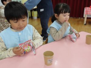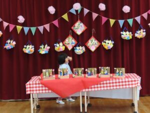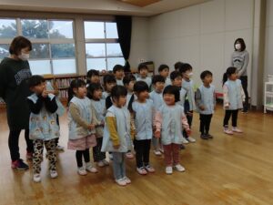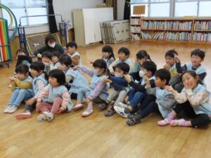 紙芝居の後「うれしいひなまつり」を歌いました。全員で1番を歌いました。