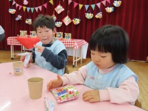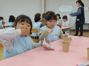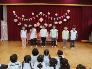 今日は3月3日、桃の節句「ひなまつり」です。幼稚園でもひなまつり会を行いました。