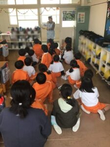 「えほんだね」の方々に読み聞かせをしていただきました。ありがとうございます。子どもたちは、たくさんリアクションをして楽しんできいていました。