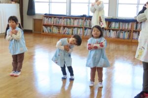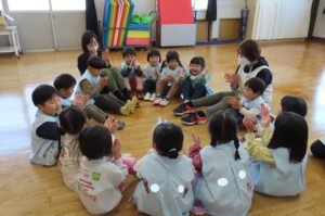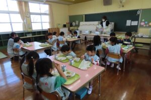 今日から年少組の給食が始まりました。全園児での活動「わくわくタイム」もスタートです。