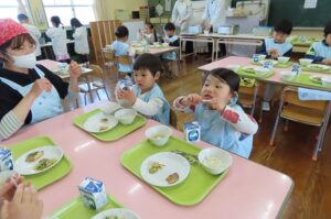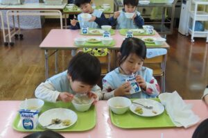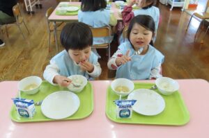 なんと、年少さんは「ごはんとみそしる」をおかわりしました。