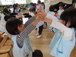 今日の誕生日のお友だちのやりたい遊びは「ラーメンたいそう」「木の中のリス」でした。