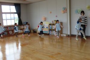 いろいろな動物になって、遊戯室を走りました。