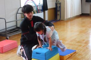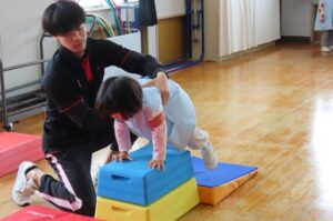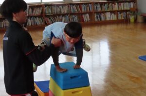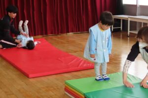 その後、マットで前転や後転、跳び箱をしました。