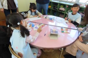 今日の振り返りでは、「おかあさんがきてくれてうれしかったです。」「○○ちゃんのおとうさんとあそべてたのしかったです。」・・・今日はとても楽しかったようです。