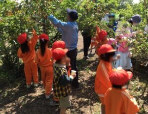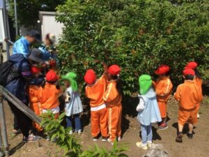 「伊勢寺地域環境保全向上活動をする会」の方々のサクランボ畑で、伊勢寺幼稚園のみなさんと一緒にサクランボ狩りをさせていただきました。