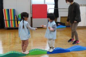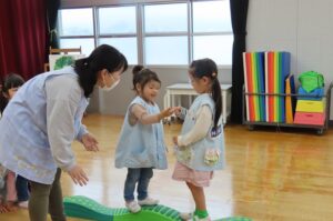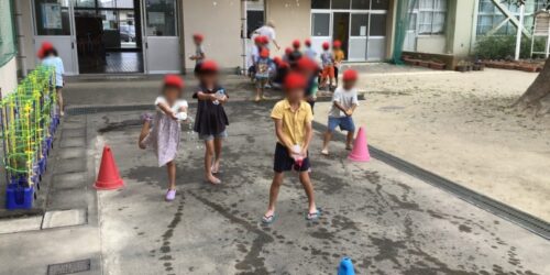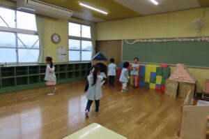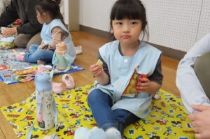 予定していた遠足が延期になったので、幼稚園で遠足ごっこをしました。わくわくタイムを少し長くしてみんなで遊びました。