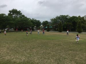 「だるまさんがころんだ」「ケイドロ」「おにごっこ」・・・ なかよし班開きのときに話し合って決めた遊びを班ごとにしました。