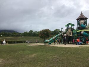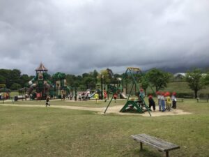 途中、東屋やテントで雨やどりする時間もありましたが、なかよし班での遊び、遊具での遊びを思いっきり楽しみました。