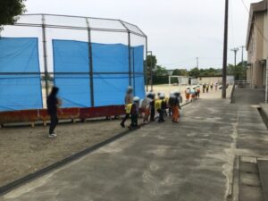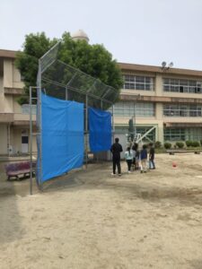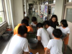 教頭先生が遠足で使ったブルーシートを洗っていると・・・ 子どもたちが手伝ってくれました。ありがとう!