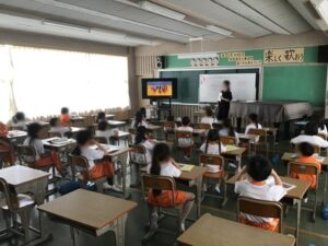 班長さんは1年生を迎えにいって、一緒に掃除場所に行きました。