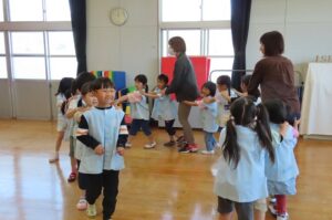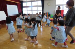 音楽に合わせて体を動かします。