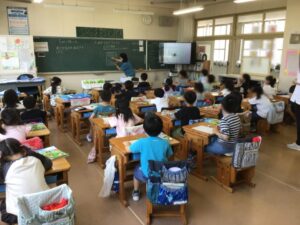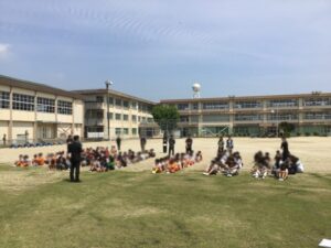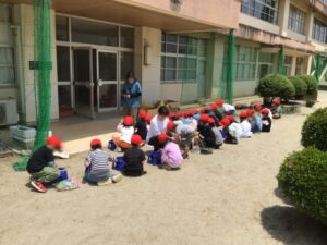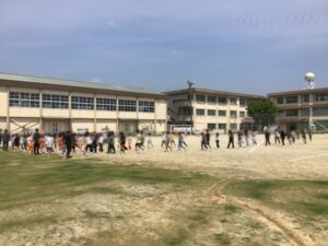 避難訓練終了後、6年生が足ふき用雑巾の片づけを手伝ってくれました。ありがとう!
