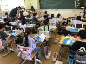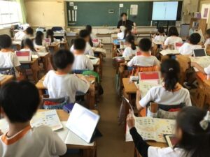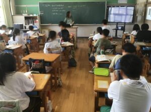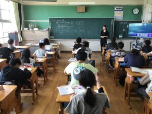 「カンジーはかせクイズ大会」です! 一人ひとりがつくった都道府県のクイズをみんなで解いています。
