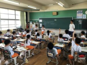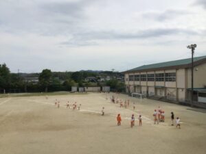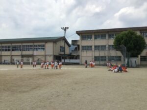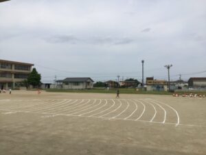 ソフトボール投げです。5年生は、測定をしながら2年生にアドバイスもしていました!