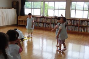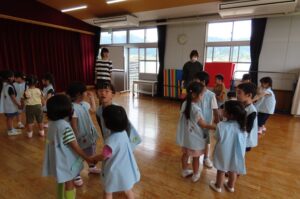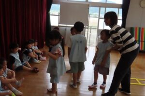 無事に2つのグループに分かれて、ドンじゃんけんぽんができました。「これでわくわくたいむをおわります。」