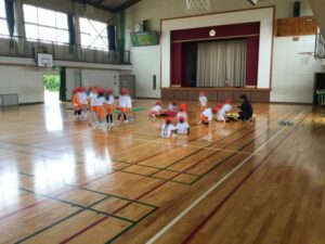 前転の練習をしています。