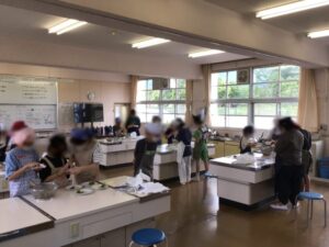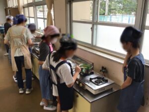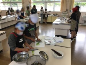 調理実習で、小松菜のおひたしとゆでいもを作ります。