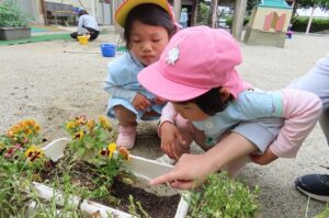「なにをみつけたの?」「つまぐろしょう(ひょう)もん!」かわいい子どもたちです。