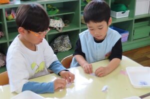 ホーム > 日々の活動の様子 / 伊勢寺幼稚園 おりがみで製作(5/30) 年長さんはおりがみで何かを作っています。先生に教えてもらったり、友だちと教えあったりしながら活動していました。 何ができるかお楽しみです。 シェアする Twitter でシェア はてなブックマークに保存 LINE でシェア Facebook でシェア Pocket に保存 Feedly で購読 関連投稿 日々の活動の様子 / 伊勢寺幼稚園 預かり保育(7/28) 日々の活動の様子 / 伊勢寺小学校 7月2日(水) 日々の活動の様子 / 伊勢寺小学校 4月14日(月) 日々の活動の様子 / 伊勢寺小学校 10月27日(月) 日々の活動の様子 / 伊勢寺小学校 12月11日(木) 日々の活動の様子 / 伊勢寺幼稚園 今日の様子(5/20) 前の投稿 5月29日(木) 次の投稿 5月30日(金)