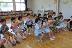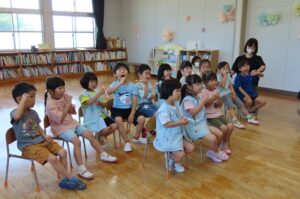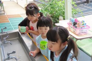 次はガラガラうがいやブクブクうがいです。年少さんはここまでです。