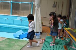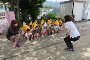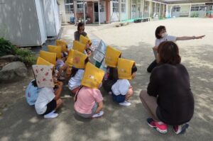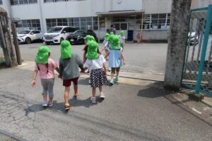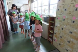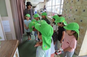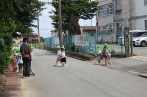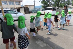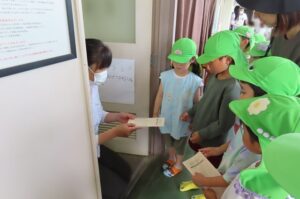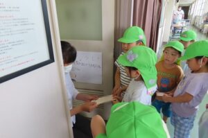 年長さんが7月11日実施予定の「夏祭り」の招待状を小学校へ届けました。