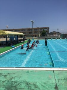 小学校で初めてのプール水泳です。