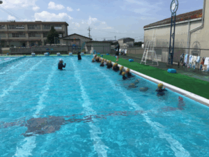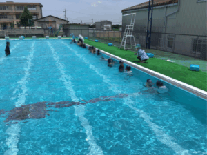 少しずつ体を水に慣らして、水中じゃんけんをしたり、プールの中を歩いたり、宝探しをしたり・・・ 1年ぶりのプール水泳を楽しみました!