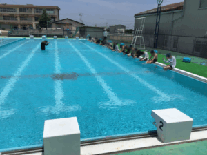 プール開きから4日め、3・4年生は待ちに待ったプール水泳でしたね。