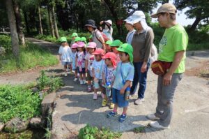 「いせでらさんぽみち」の歌に歌われている史跡・名所を松田さんの案内で巡りました。まずは~わきみずゆたかな『いずみのもり』~です。