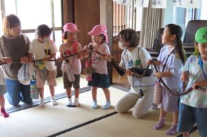 大きな太鼓がありました。年長さんだけたたかせてもらいました。