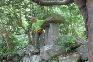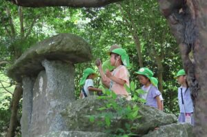石でたたくといい音が鳴るようです。年長さんが鳴らしてみました。他の石と音が違いました。