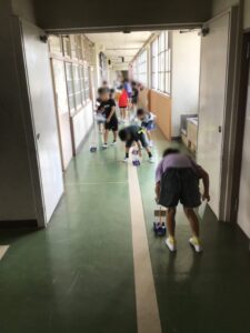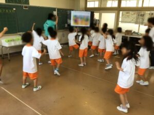 暑さ指数が高いため、教室で体を動かしました。