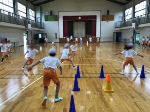 「スポーツおにごっこ」をしています。とても楽しそうです!