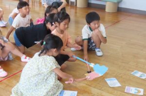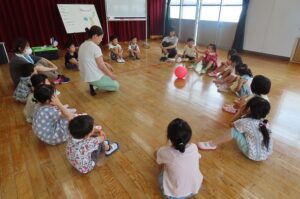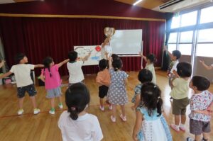 踊ったり歌ったり、ゲームをしたりしながら英語に親しんでいます。