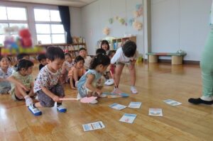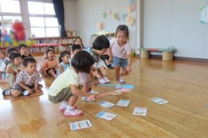 天気がイラストで描いてあるカードを選ぶゲームをしました。
