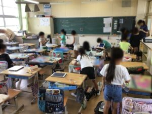 今日は一斉下校です。