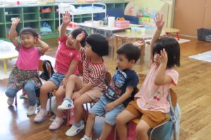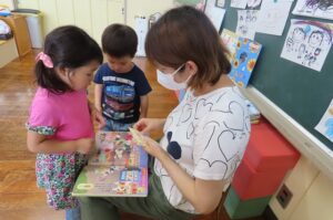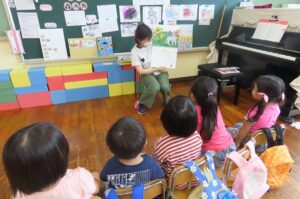 ホーム > 日々の活動の様子 / 伊勢寺幼稚園 今日の一コマ(7/9) 降園活動の様子です。年長さんは絵本の読み聞かせ中でした。 年中・年少さんも絵本の読み聞かせでした。 夏まつりの日をカレンダーで確かめています。 「夏まつり楽しみな人?」みんな元気に「はーい!」 年少さんのお手伝いをしてくれていました。 シェアする Twitter でシェア はてなブックマークに保存 LINE でシェア Facebook でシェア Pocket に保存 Feedly で購読 関連投稿 伊勢寺小学校 / 日々の活動の様子 10月28日(火) 日々の活動の様子 / 伊勢寺幼稚園 ひよこランド②(6/19) 日々の活動の様子 6月23日(月) 日々の活動の様子 / 伊勢寺小学校 10月6日(月) 日々の活動の様子 / 伊勢寺幼稚園 英語で遊ぼう④(9/9) 日々の活動の様子 / 伊勢寺小学校 9月1日(月) 前の投稿 7月8日(火) 次の投稿 7月9日(水)
