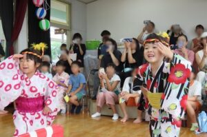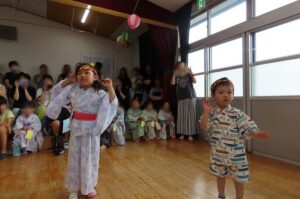 『だるまちゃん音頭』『踊れ・どれ・ドラ ドラえもん音頭』を踊りました。