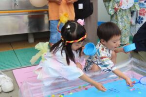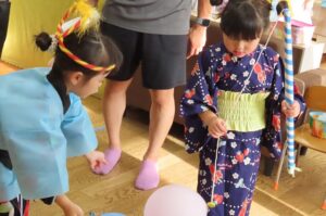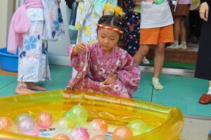 年長組のお店は「ボール入れ」と「ふうせんつり」でした。