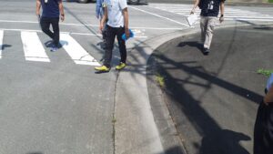 瑞巌寺入口交差点周辺の通学路の路側帯ラインが消えたり消えかけたりしています。伊勢寺町自治会長様にもお立会いいただき、松阪警察署や県・市の職員の方々に状況を確認していただきました。ありがとうございました。今年度中に対応していただけるそうです。