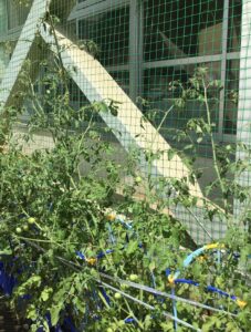 ミニトマトの実がたくさんなっています。赤くなりはじめているものもあります。夏休みにたくさん収穫できそうです!