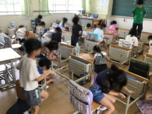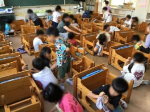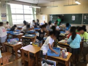 校長先生からは「長期の休みにしかできないことにチャレンジしましょう。お家のお手伝いをしたり、地域の行事に参加したりして、お家の人や地域の人と一緒に過ごす時間を大切にしましょう。命を大切にしましょう。」、生活指導の先生からは「自分の大切なものを失うことのないように、健康や安全に気をつけて過ごしましょう。夏休みの生活の約束を守って、楽しい夏休みにしましょう。」と話がありました。
