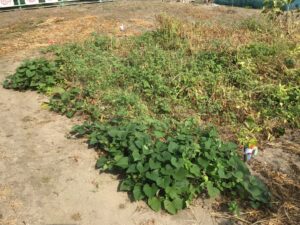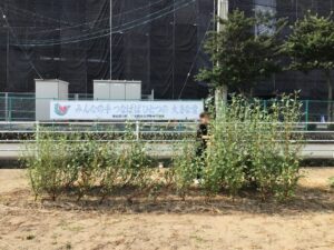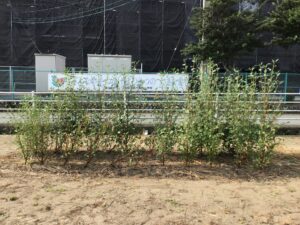 6月に4年生が植えたモロヘイヤ。夏休み前に1回目の収穫をしましたが、その後もぐんぐんのびて・・・