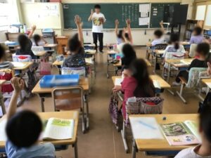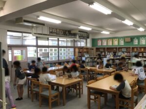夏休み前に借りた本を返しました。さっそく次の本を借りている子どももいました。