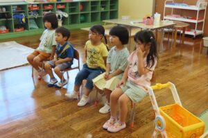 今日から給食が始まり、通常保育になりました。わくわくタイムも当番さんが進めてくれました。