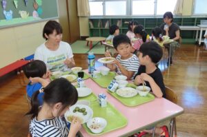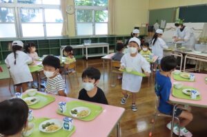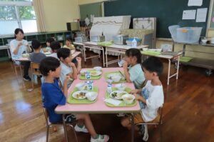久しぶりの給食でした。話しながら楽しくいただきました。